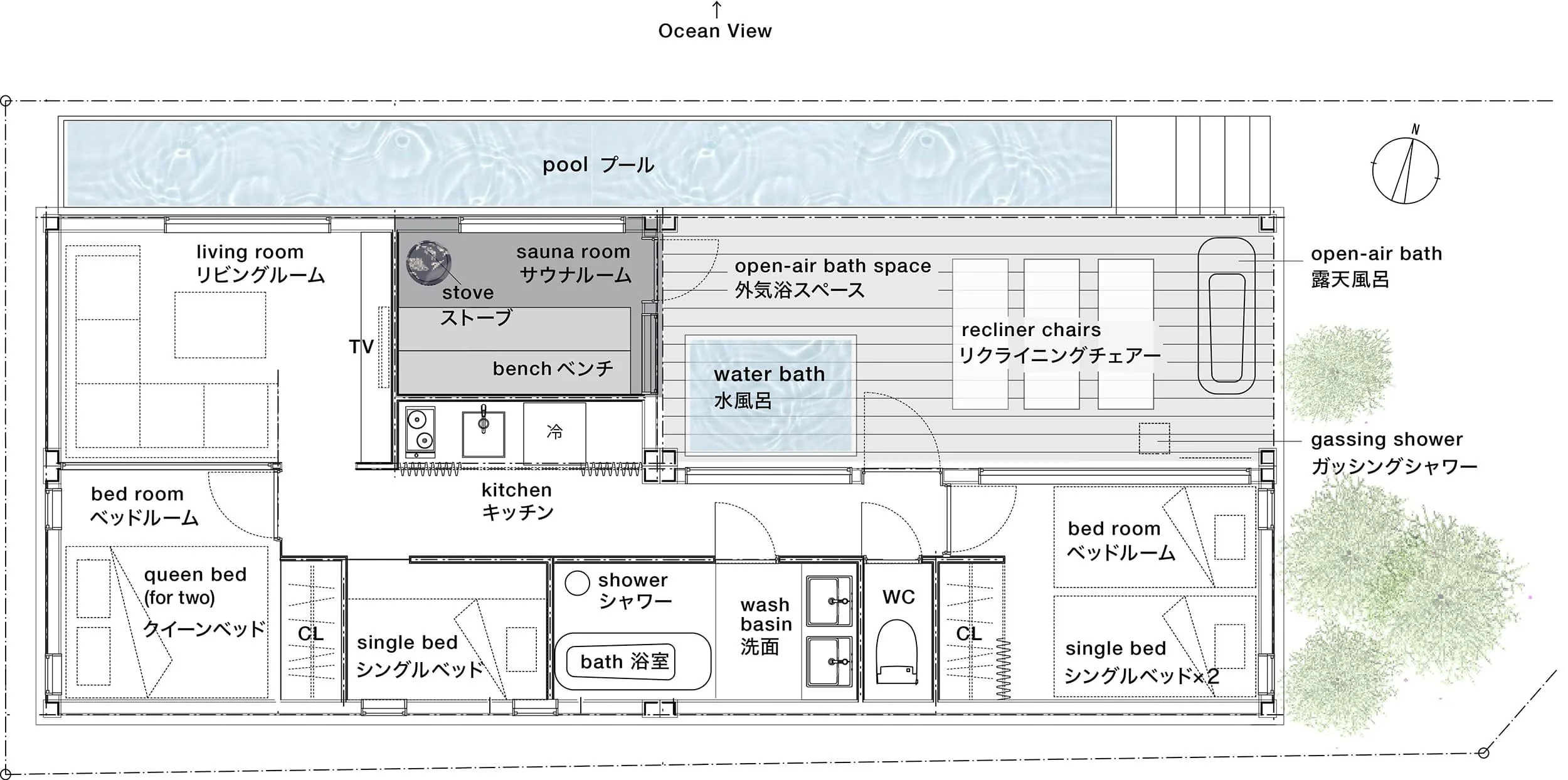 ・LD,kitchin bedroom3, washroom, sauna room (self-löyly), cold plunge bath, warm bath, open-air bath, shower, toilet